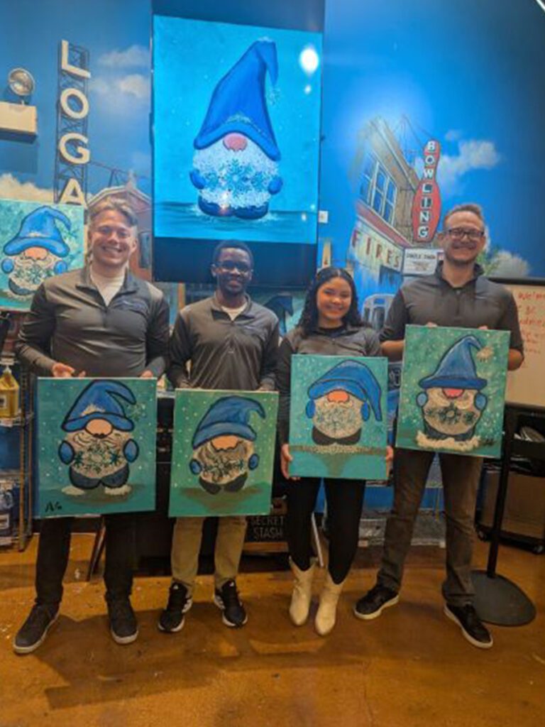 A Worthy Cause: African Connection, a nonprofit founded by Mariah Geoly’s brother-in-law David Immanuel, helps high school and college students in Africa build stronger futures. Mariah recently hosted a Sip & Paint fundraiser in support of the organization. From left: Andrew Geoly, David Immanuel, Mariah Geoly and Alex Geoly.
